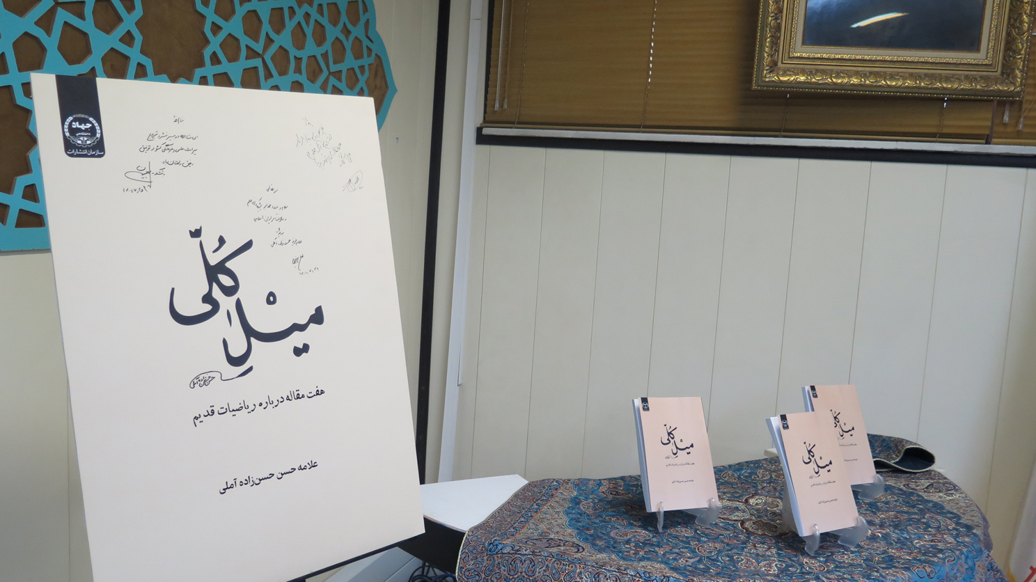کتاب «ميلِ كُلی»، مجموعه هفت مقاله درباره ریاضیات و هیأت قدیم، به قلم دانشمند فرهیخته مرحوم آيت‌الله علامه حسن‌زاده آملی، روز سه‌شنبه ۲۶ مهر با حضور جمال رحیمیان؛ معاون فرهنگی جهاد دانشگاهی، یاسر احمدوند؛ معاون فرهنگی وزارت فرهنگ و ارشاد اسلامی، حامد علی‌اکبرزاده؛ رئیس سازمان انتشارات جهاد دانشگاهی و محمدحسین حسنی؛ رئیس سازمان قرآنی دانشگاهیان کشور، در خبرگزاری بین‌المللی قرآن(ایکنا) طی مراسمی رونمایی ‌شد.